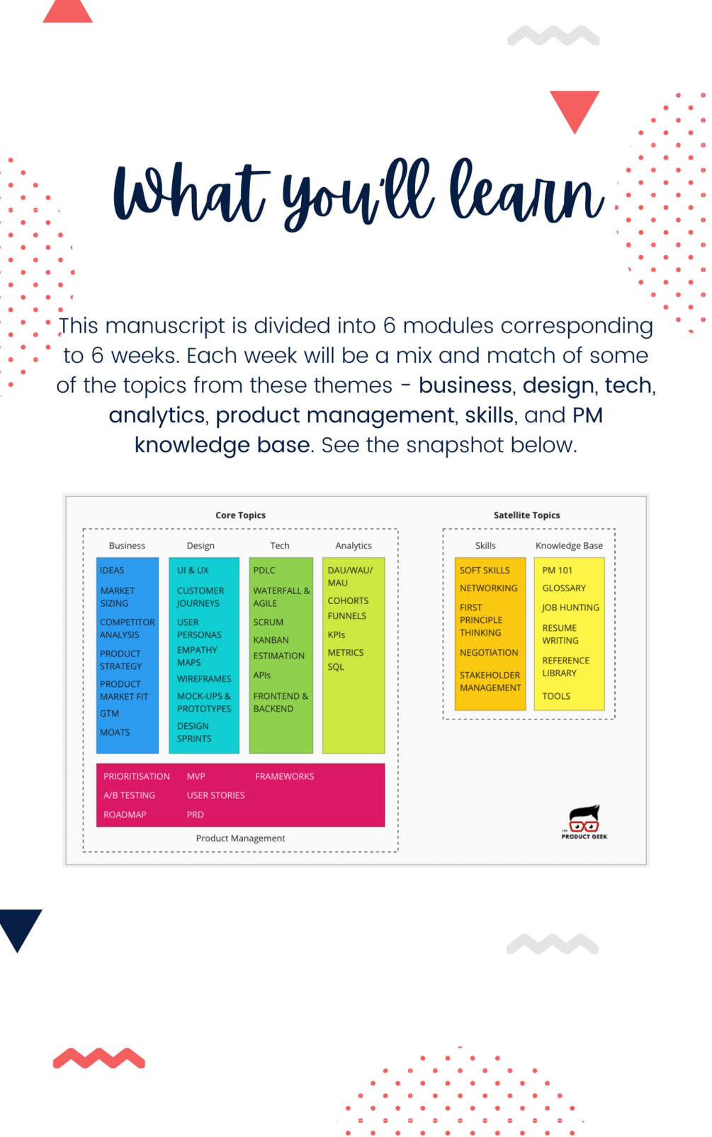 This manuscript is intended to serve as a quick actionable reference guide for anyone who is exploring product management as a career option - a student, a working professional, a founder!